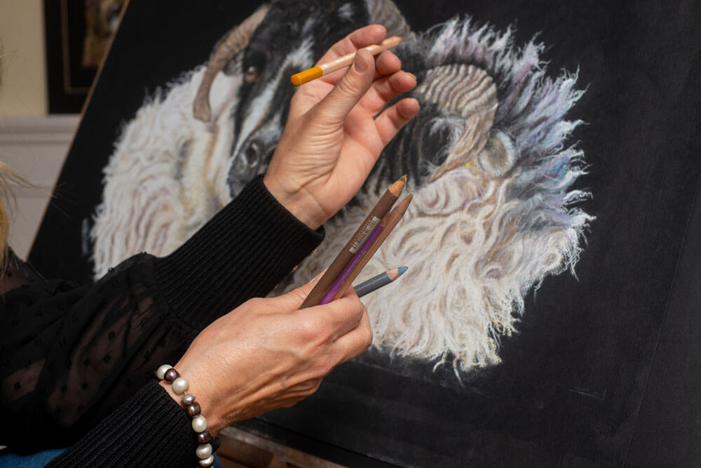 In 2017 my drawing developed in earnest, inspired by my wonderful dog Yogi, I initially began sketching graphite drawings of him which led to drawing other animals. I was delighted with how this gift developed so quickly over a few months, as I was self-taught. Discovering pastel pencils allowed me to bring so much more colour and greater dimension to my work.